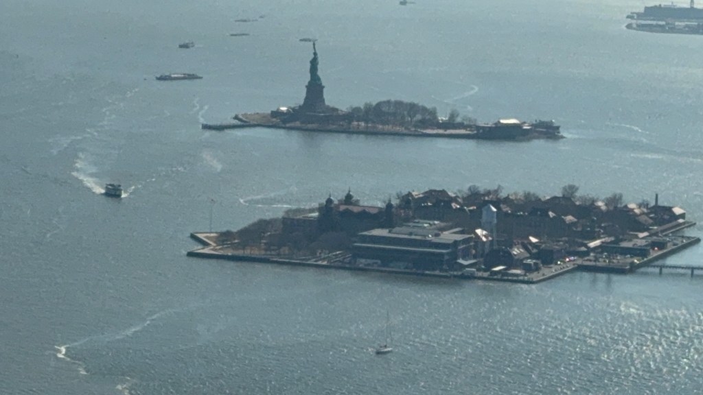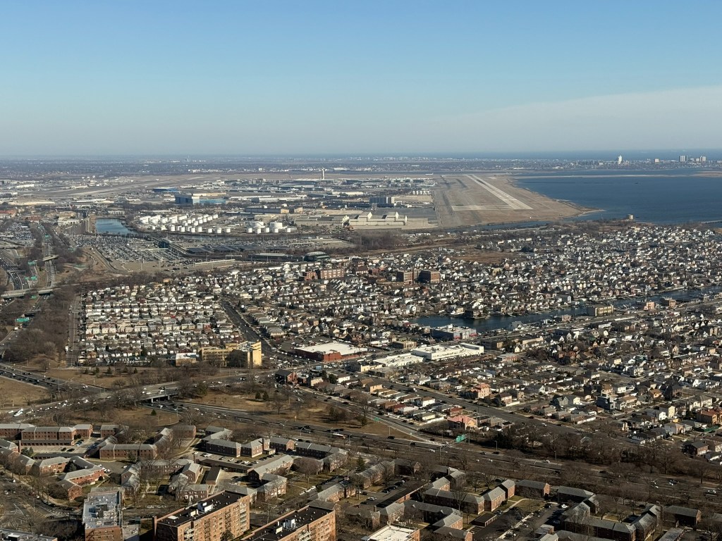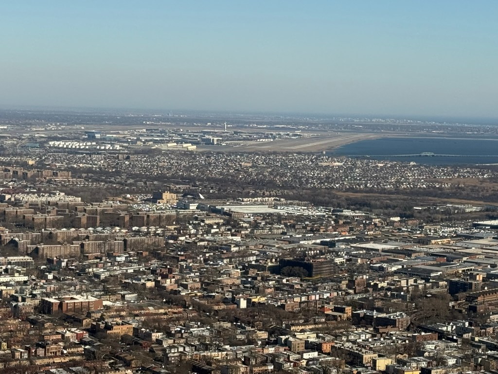 We took off and flew south down the river and around the southern tip of Manhattan, across Brooklyn and into Queens.
