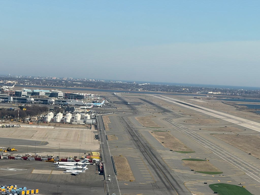 We approached JFK from the west. Unlike last time, the runway near the general aviation area wasn’t active so we didn’t see any close-up views of planes taking off. The flight took about five minutes from start to finish.