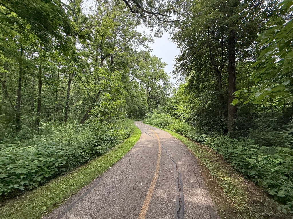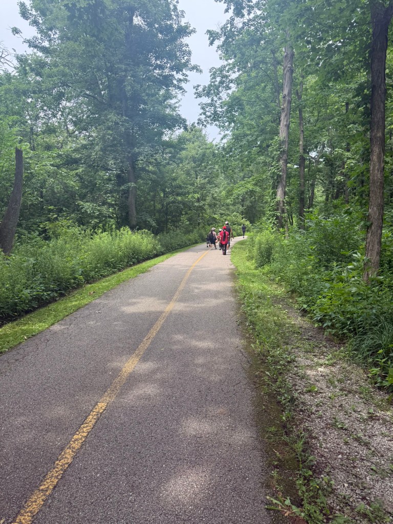 It took me about 25 minutes to get to the parking lot at Busse Woods and I arrived around 2pm. I took a slightly longer route to avoid the I-90 tollway as I didn’t want to pay for the Hertz toll charge or have to deal with paying the toll online. It was busy there, but I found a spot, grabbed my hat and water bottle (that I had remembered to fill at the Atlanta Admirals Club) and headed out on the walking trail. It was mostly shaded, although there were stretches in the open. The temperature was not bad for July – around 80 with a lot of cloud cover. It was humid, but not Atlanta humid.