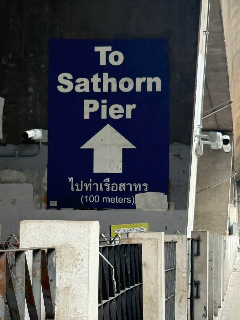 I got off at the Saphan Taksin station near the river and walked to nearby Sathorn pier. The way was well-marked.
