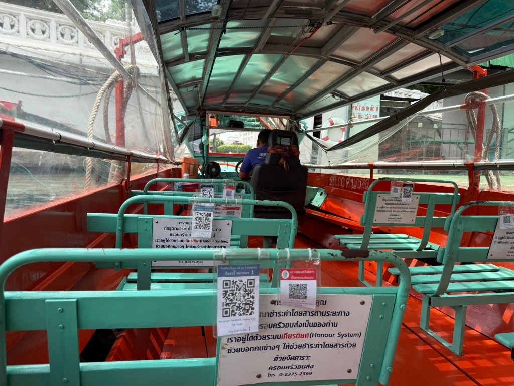 At the pier, I bought a ticket on one of the riverboats that stopped near the Grand Palace. There are several different colored-routes that ply the river and some stop at more locations than others. It’s a good idea to research this a bit before you visit. My boat cabin was actually indoors and air-conditioned which I appreciated.