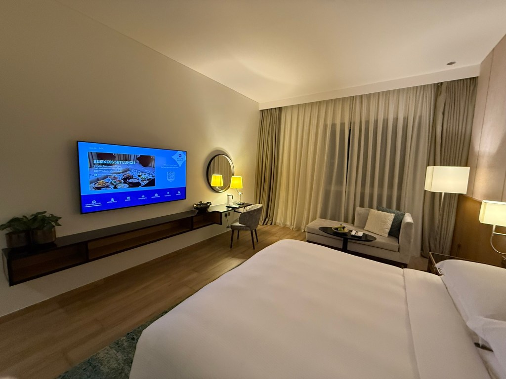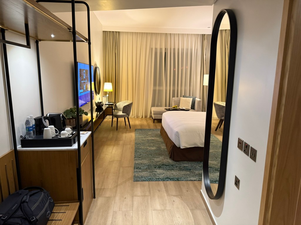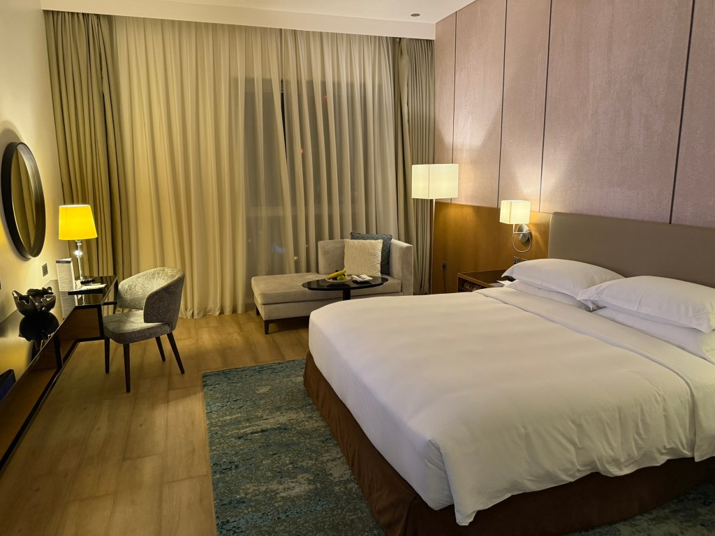 I arrived at the Hyatt Regency Oryx Doha just after midnight local time, but it was after 4am in Thailand where I had just come from, although I hadn’t really acclimated to the time change anyway. The front desk agent apologized that there was no suite upgrade available, but I wasn’t too bothered for a one night solo stay. He did say I was upgraded to a club room which gave me access to the Regency Club. I booked the hotel for 5,000 Hyatt points as it is a Category 1 property. The cash price was around $120 when I booked.