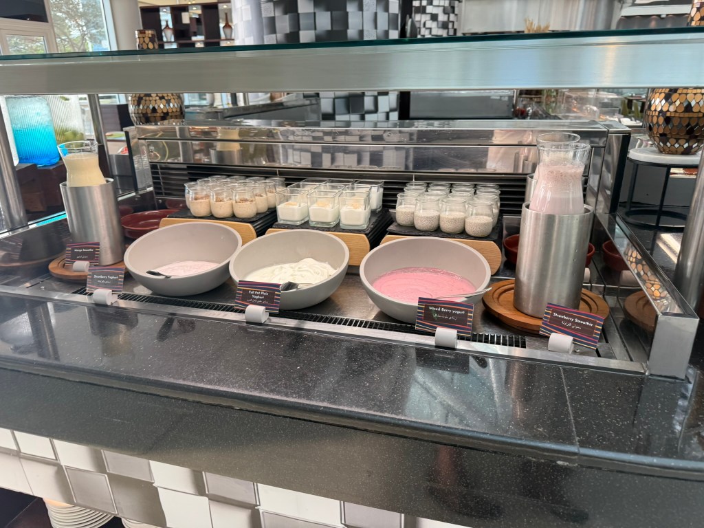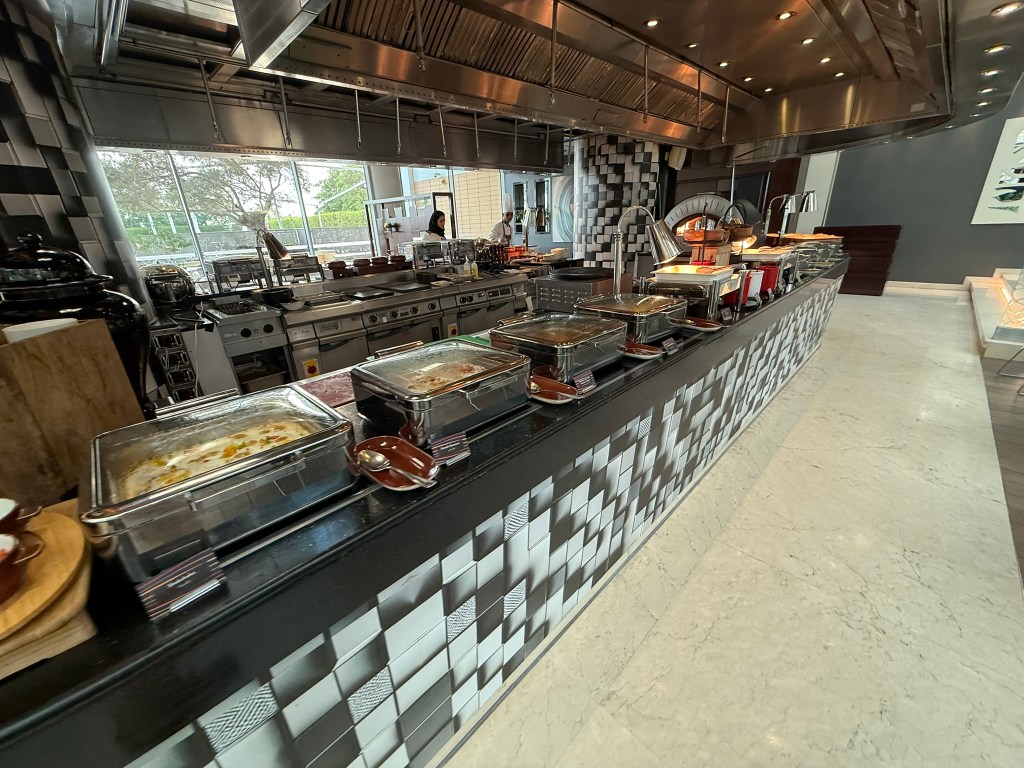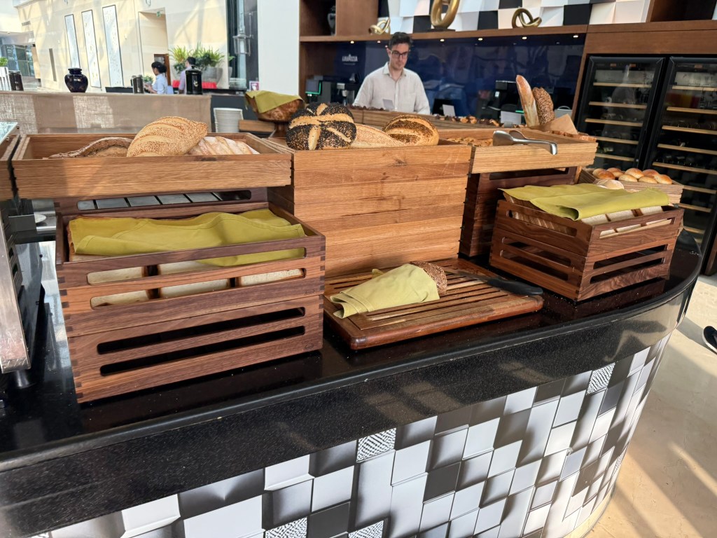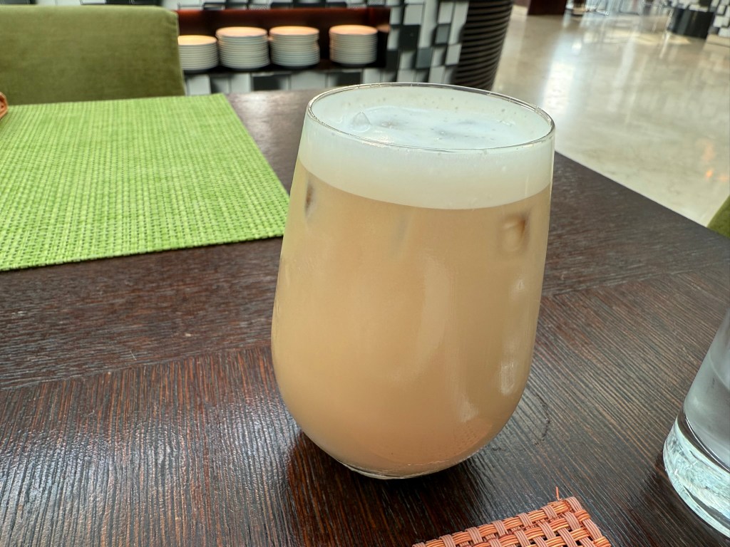 There was an extensive buffet with a made to order egg station. It wasn’t as good as the Grand Hyatt in Bangkok, but for what is basically an airport hotel, the breakfast was pretty good. I ordered an iced latte to go with my breakfast.