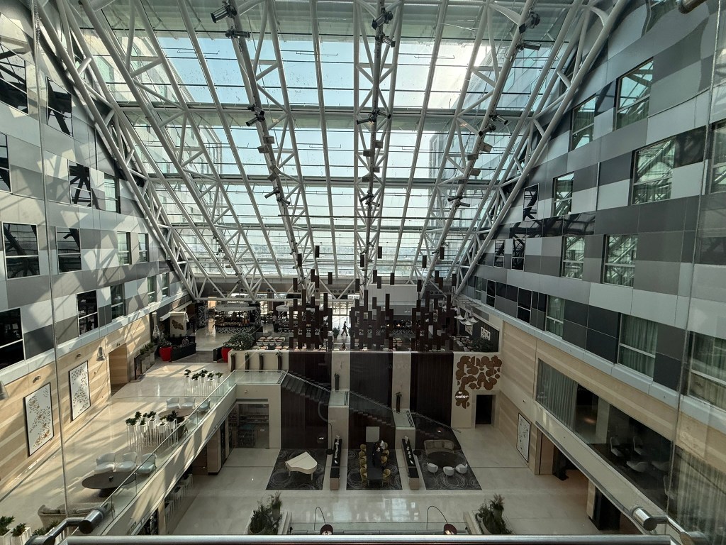 While it’s not the lap of luxury, the Hyatt Regency Oryx Doha is a comfortable and pleasant place to spend an overnight layover. If you have a bit longer or want to walk around Doha’s tourist sites (I wasn’t going to do that in 108 degree heat!), you can stay in a really nice property downtown or in the Corniche area like the Four Seasons, Ritz or Andaz for much less than typical US or European rates. For my purposes of a quick overnight, this hotel worked perfectly.