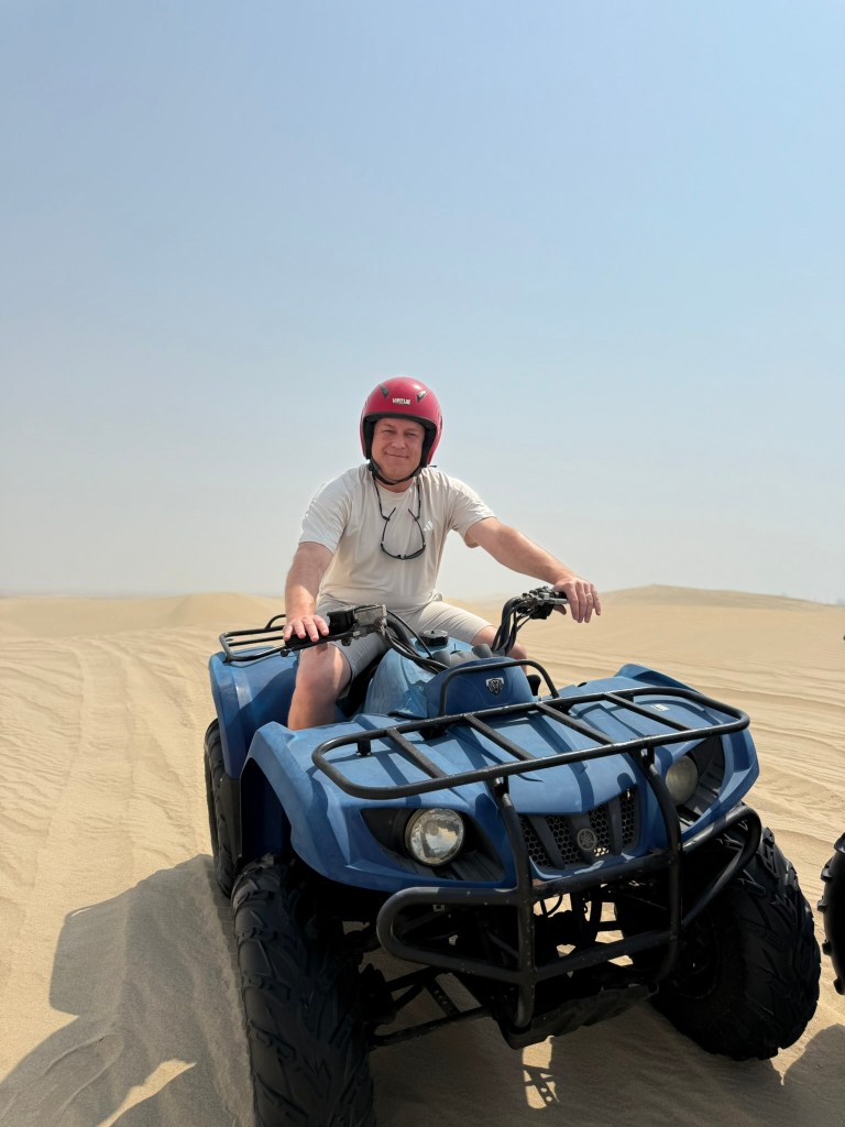 It took us about 50 minutes to reach our first stop: ATV riding. The women declined to participate, but I was looking forward to this. I was given a quick tutorial and rode out to the dunes behind a guide. My only issue was that I was wearing shorts (it was 108!) and got some minor burns on my legs where the heat of the engine mixed with the desert heat and sand.