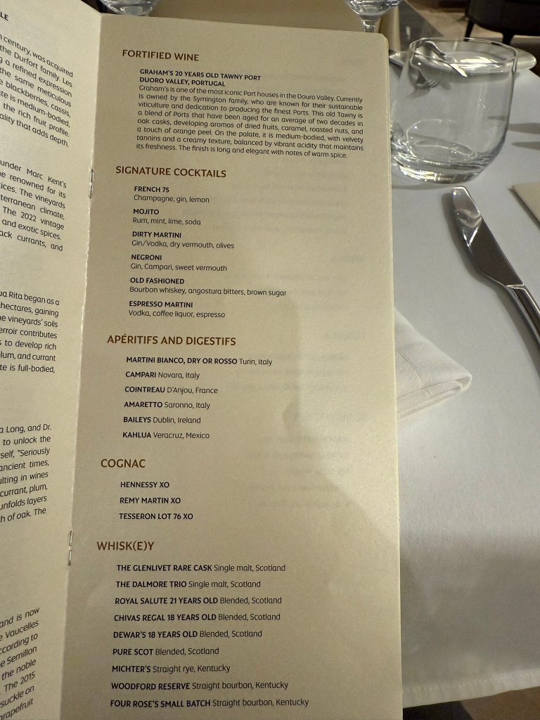 From start to finish, this might have been the best overall meal of the trip. I also tried the Glenlivet Rare Cask and enjoyed that to cap off the meal.