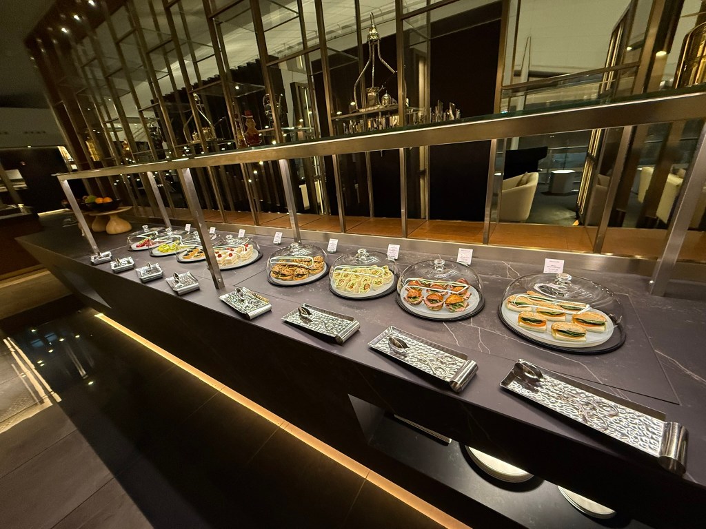 I made my way into the lounge and saw the dining area where I was then seated at a table. There was a small buffet on the side with appetizers, sandwiches and desserts.