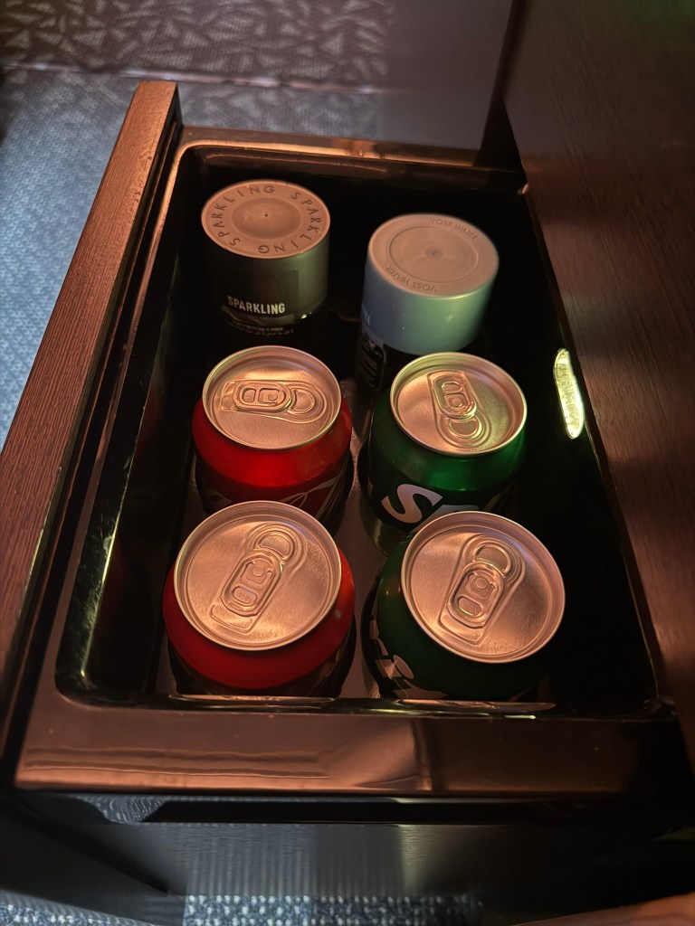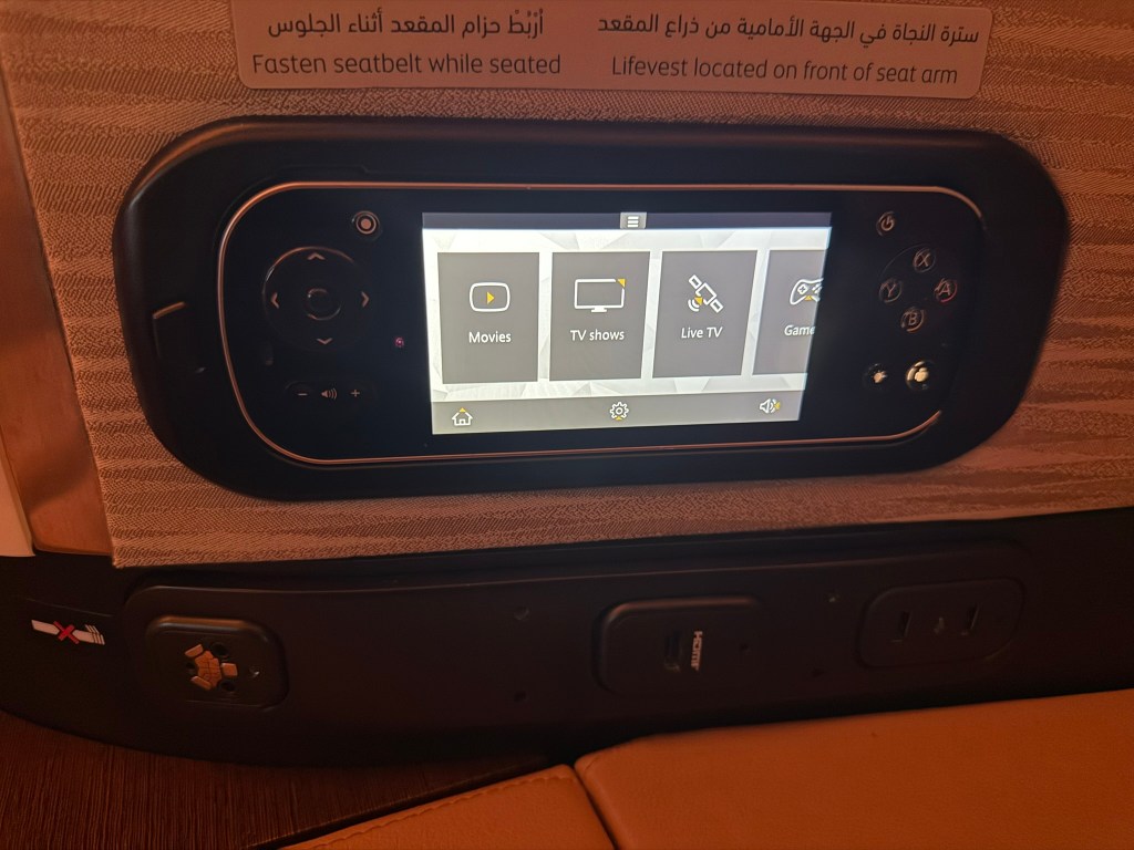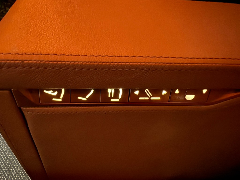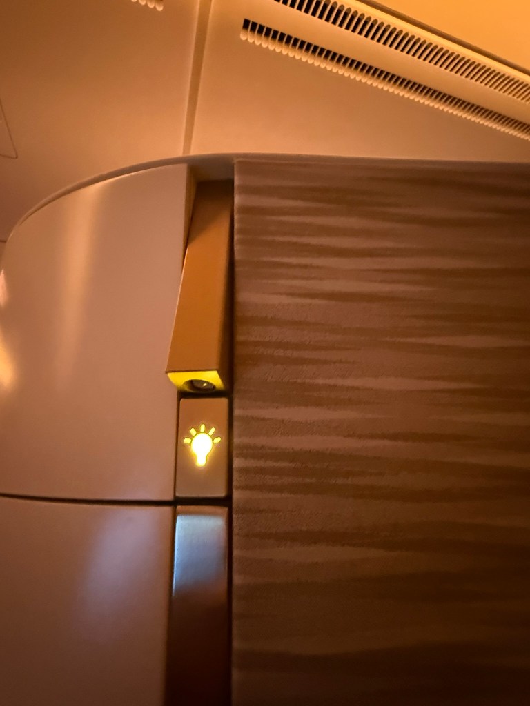 Here are some more pictures of the seat and its functions. There’s a minibar with soft drinks next to the seat and unlike Emirates, they actually keep the drinks cold.