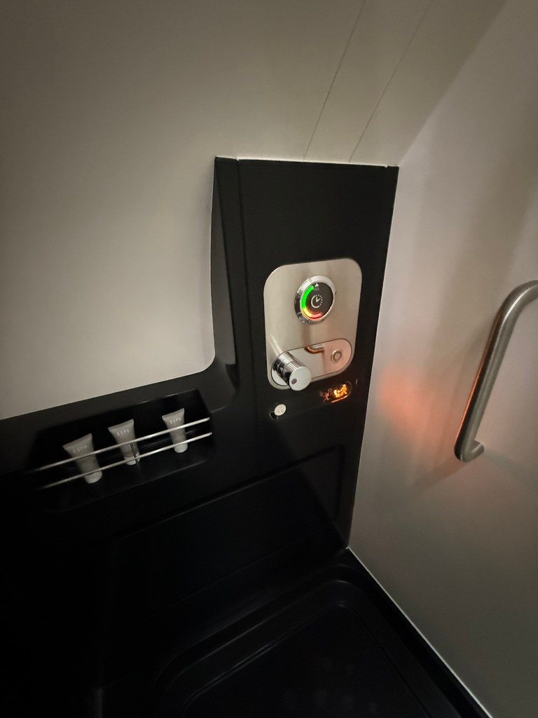 The flight attendant left to prepare the shower and came back with some news: The regular shower on the right side was not working, but because there was nobody in the Residence, I could use that shower instead. I was kind of excited to see the Residence, but also mindful that if someone had paid for that upgrade, I would have been out of luck on my shower.