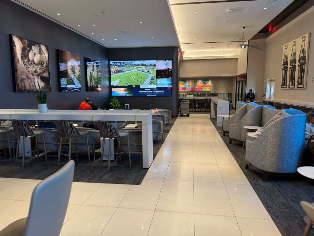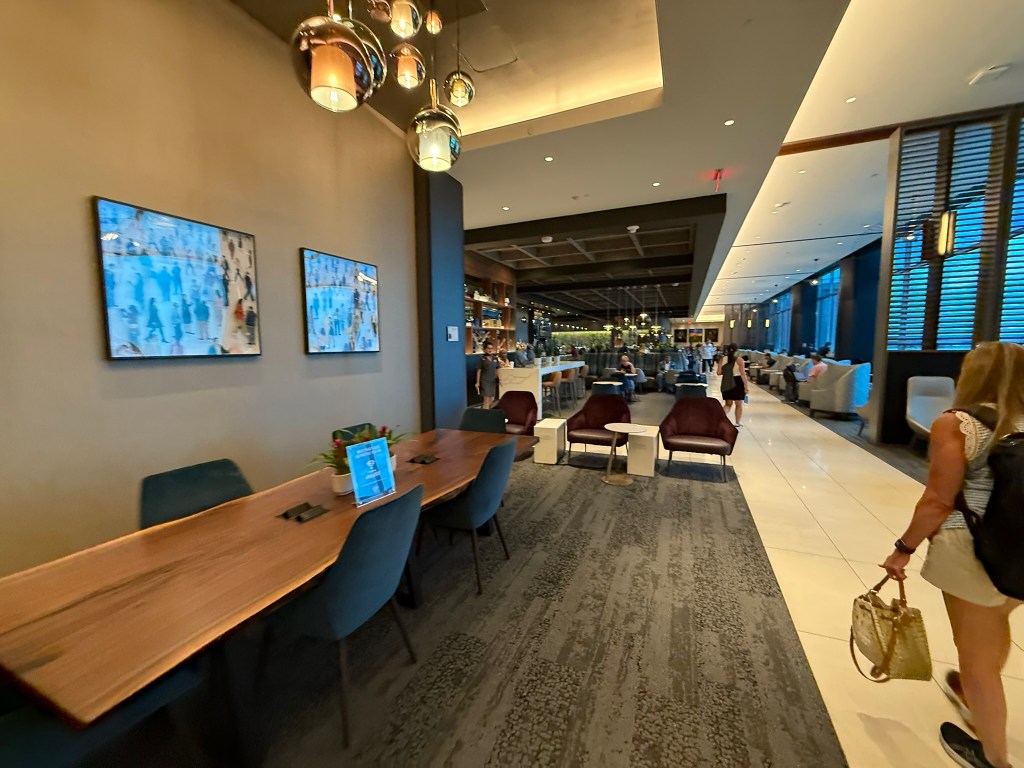There were screens playing sports and news and plenty of different seating areas throughout the lounge. Most of the seats had easy access to power and USB ports. I liked that they had tables for one as I often find the tables for two or four can waste a lot of space when many people visiting the lounge are solo travelers.
