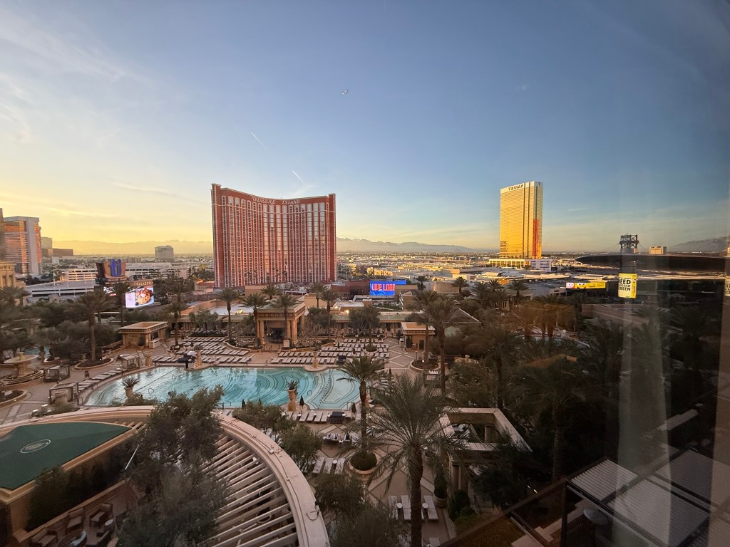 My view was directly across the Strip to the Treasure Island resort. You can see the Palazzo pool in the foreground.