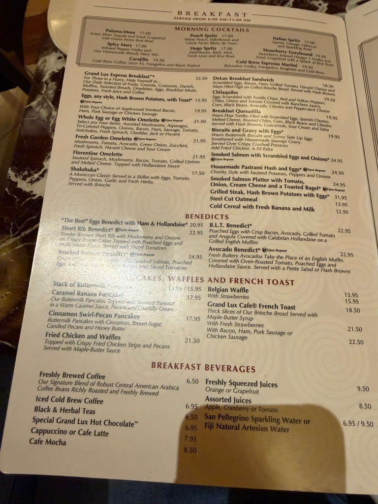 The next morning, I had plans before my flight home so I wanted a quick breakfast. The Grand Lux Cafe was just off the casino and had a buffet, although I decided to order off the menu instead.