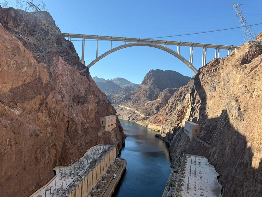 After the tour, we were free to walk around on the top of the Dam. On the way out of the area, I made a quick stop at the nearby Pat Tillman Bridge to get a better picture of the Hoover Dam from the highway overpass.
