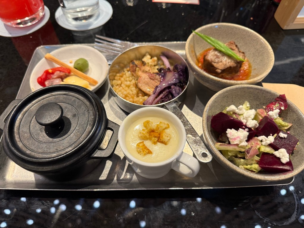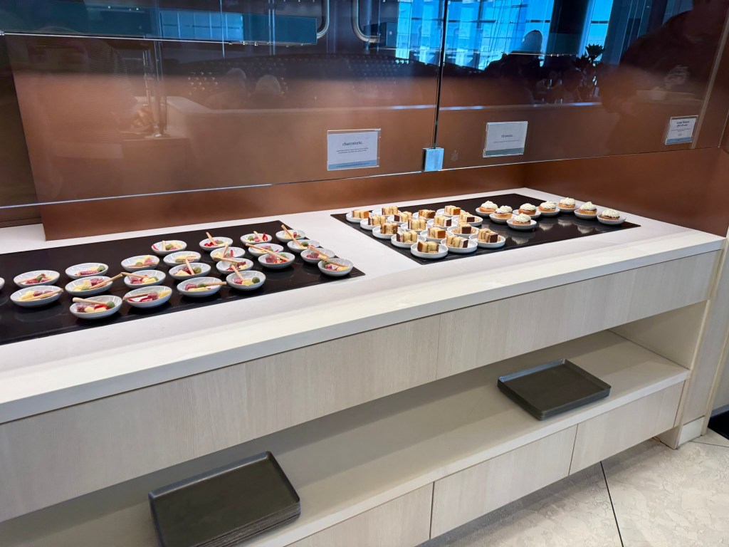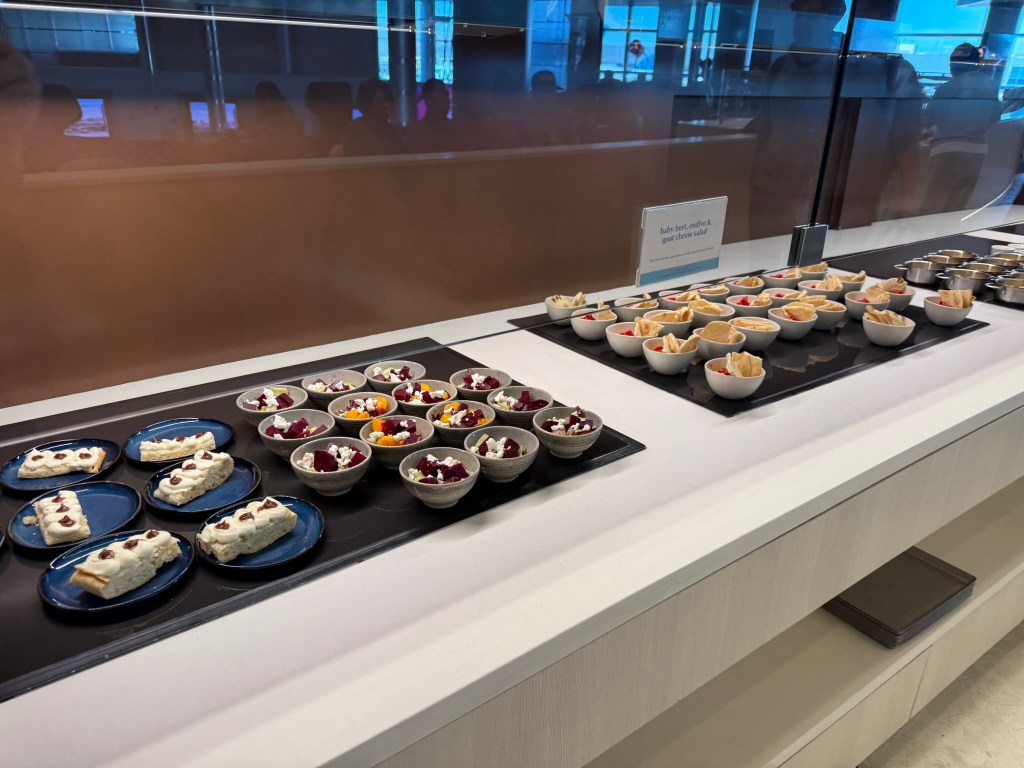 The buffet has a lot of small plates so you can load up and try everything without looking like too much of a glutton. Unlike JFK, there’s no made to order food via QR code (or a bagel counter or cheese counter) but the buffet has a lot of options.