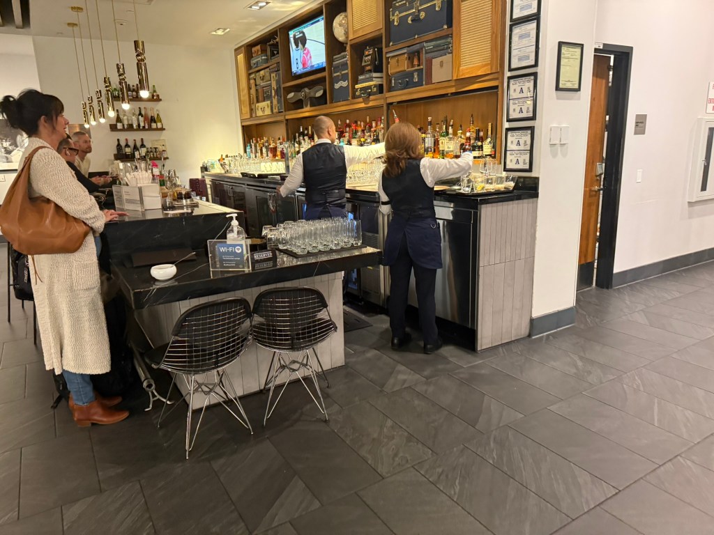 The staffed bar was busy with people getting their last call in before a short redeye flight.