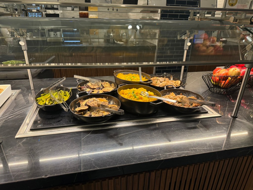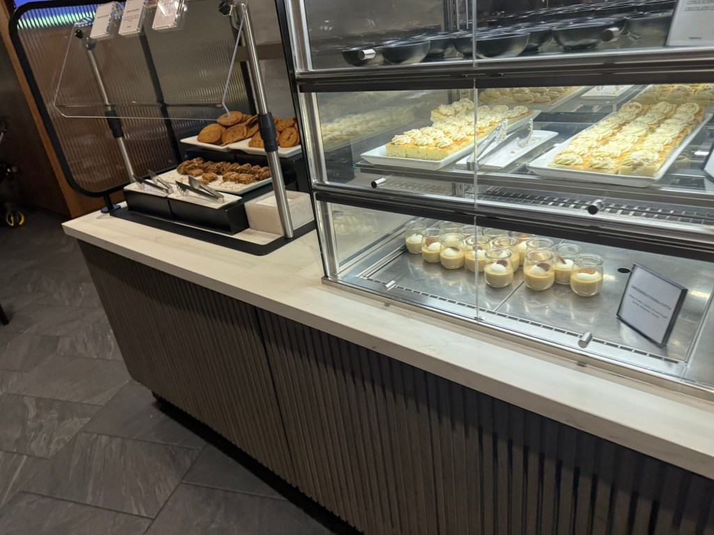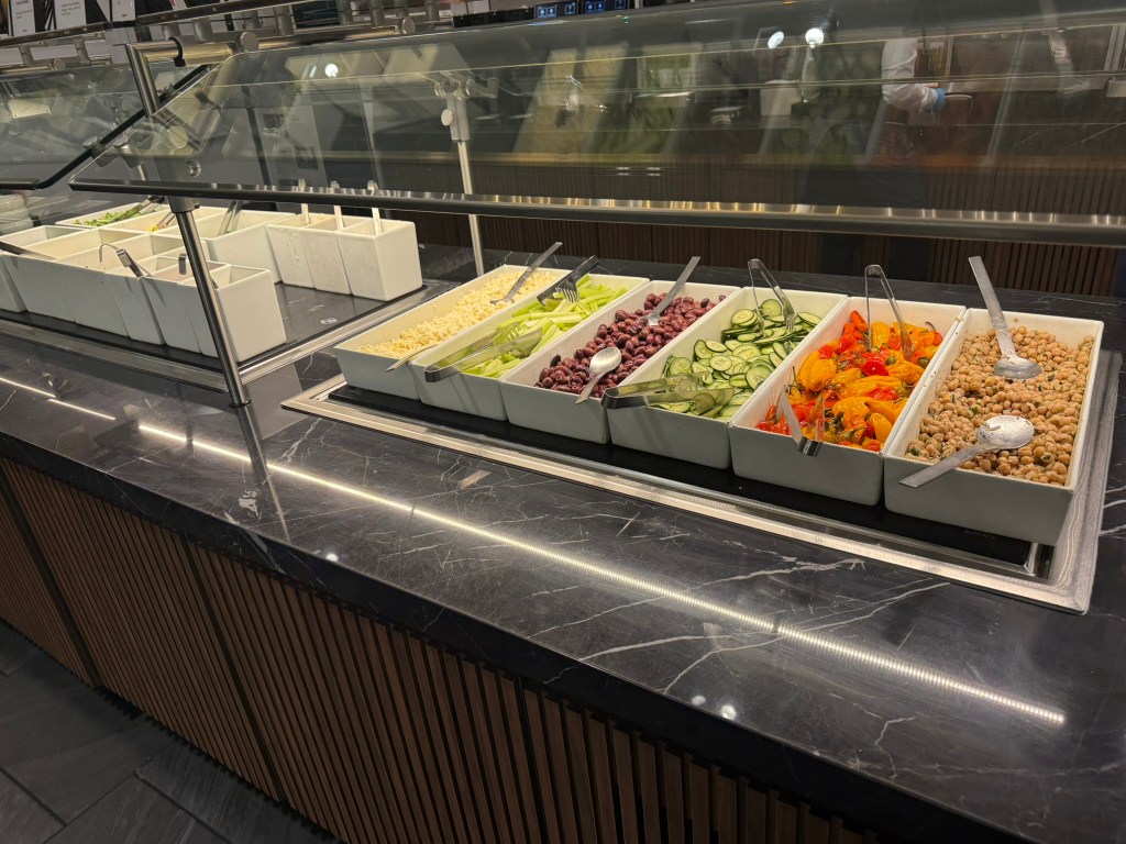 I didn’t eat much there (just a cookie and an apple) as I already had eaten lunch and dinner at the Capital One Lounge. Like most Centurion Lounges, there was a salad bar, chicken thighs and veggies on the buffet.