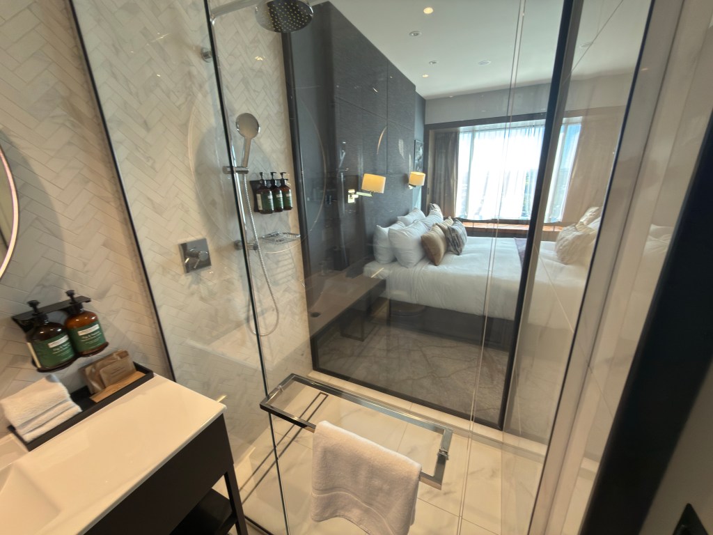 We were proactively upgraded to a King city view room thanks to my IHG Platinum status. Check-in was fairly quick and we were able to get up to our room and take a nap. The room was fairly standard, with the annoying glass window between the shower and bedroom, but we lowered the shade there and it was fine.
