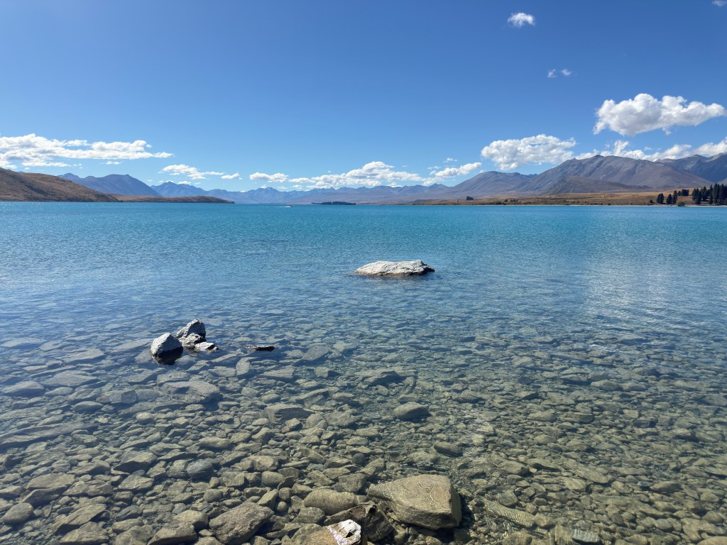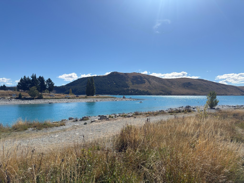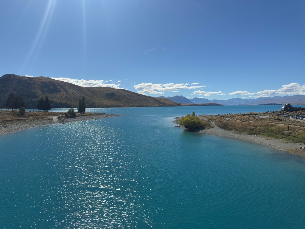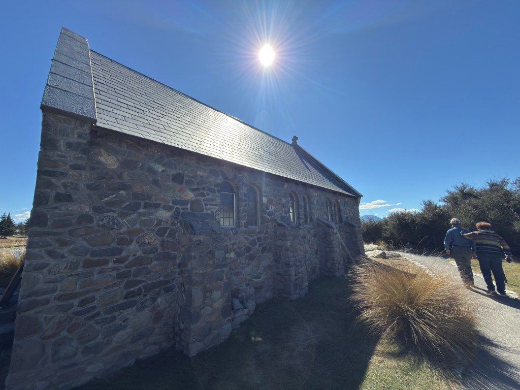 Around 2:30pm, we reached Lake Tekapo and our home for the night, the Grand Suites. I’ll have a review of that hotel in the next post. We walked down the path next to the hotel out to the lakefront and the historic Church of Good Shepherd. The weather continued to be amazing.