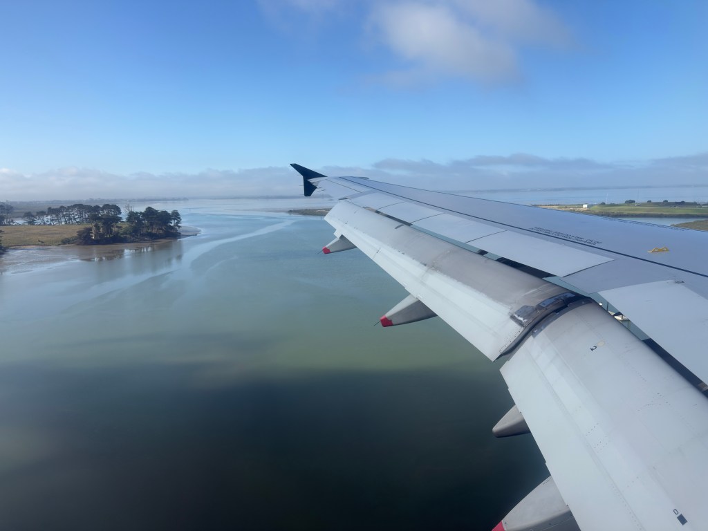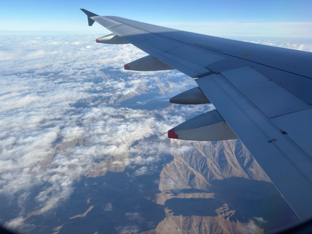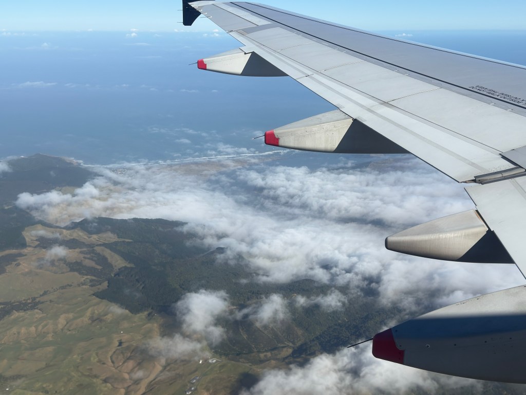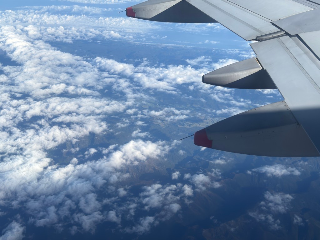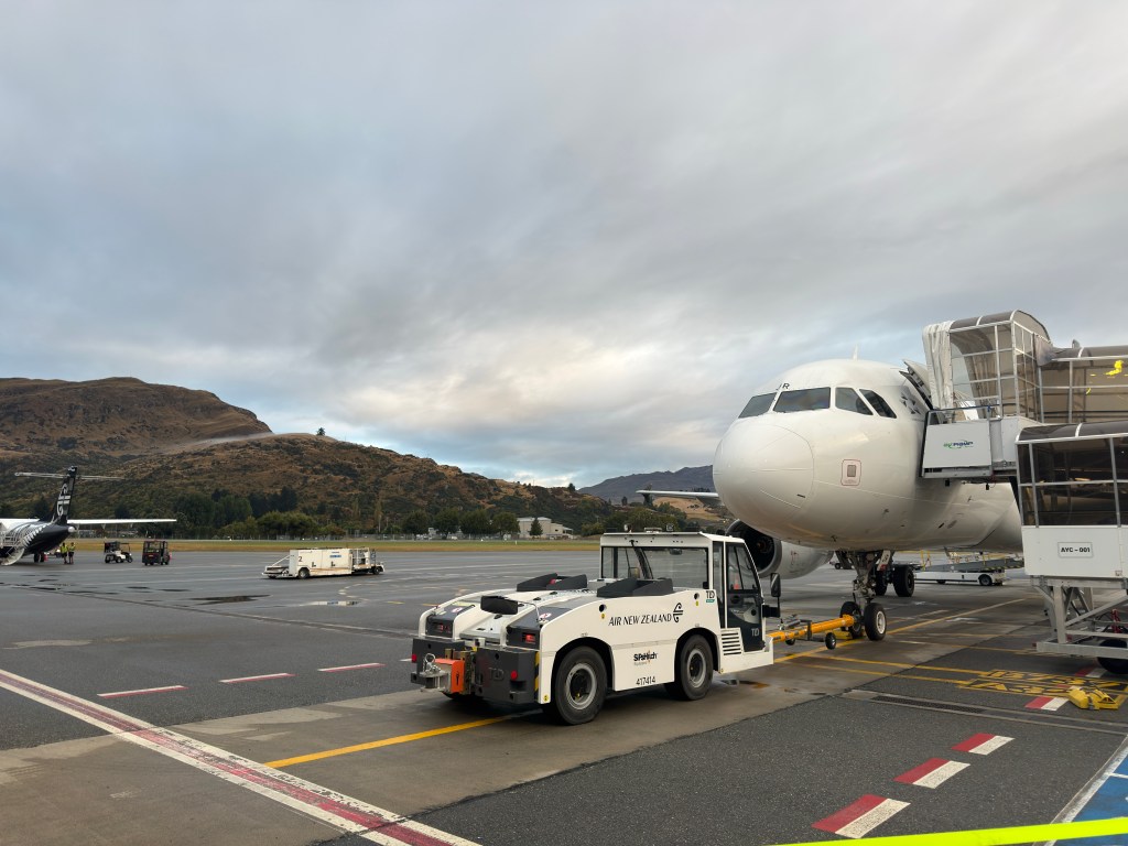Legroom was a bit better than Jetstar but not much different. We pushed back on time and headed out of Queenstown by back taxiing up the runway and taking off to the south. The safety video was played on drop down screens as we taxied out.