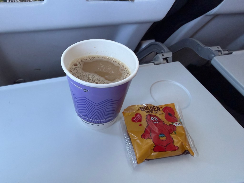 We were served a complimentary drink and snack on this flight. I had coffee and an oat bar.